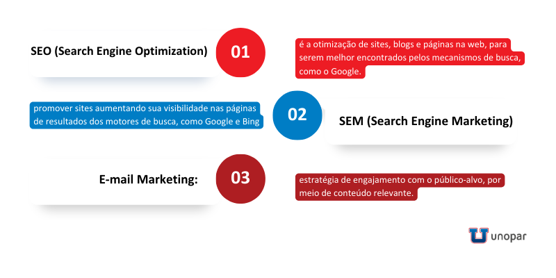 • Graduação: a graduação em Marketing Digital é ideal para aqueles que desejam se especializar em um campo dinâmico e em constante evolução. Ela oferece uma combinação de conhecimento teórico e prático, preparando os graduados para enfrentar os desafios e aproveitar as oportunidades do marketing na era digital. Quer saber mais? Veja sobre o curso de Marketing Digital da Unopar.